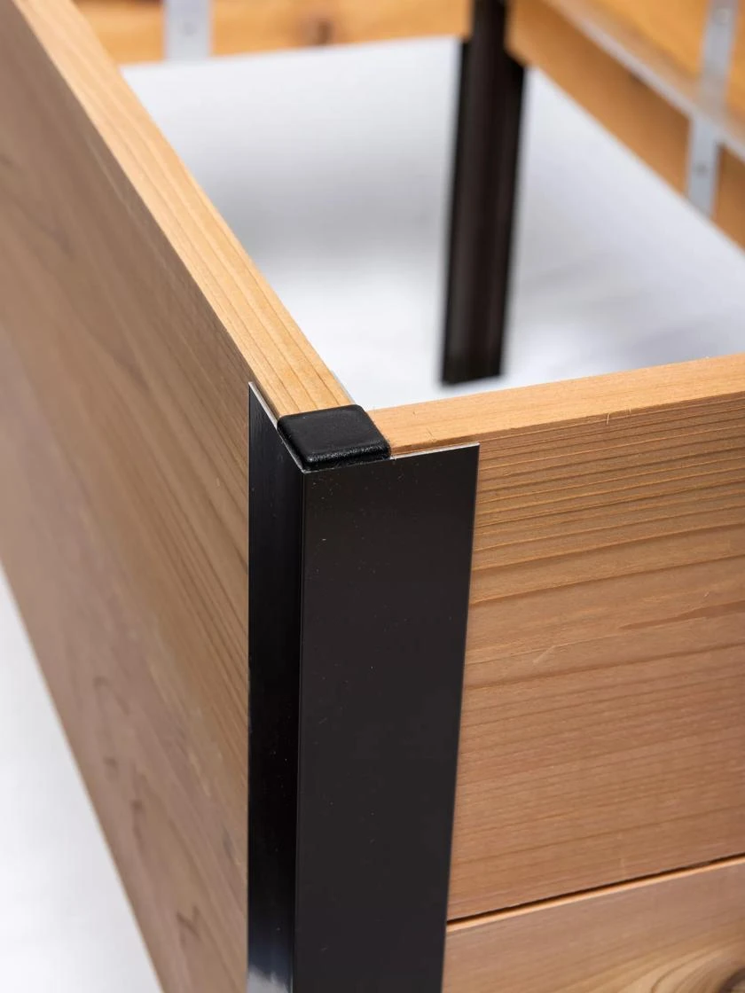 At 29″ high, this attractive elevated planter is the perfect height for easy growing, eliminating the need to stoop, bend, kneel and reach. It’s a generous 9-1/4″ deep so you can grow big plants like tomatoes and root crops like carrots. With 16 square feet of growing space, there’s plenty of room for multiple crops, yielding a generous harvest. Set up one or more of these beds on your patio to create a convenient kitchen garden, or fill them with flowers for a stunning display. Like our other Vermont-made raised beds, the sides of this standing garden are held in place with our sleek and sturdy lifetime aluminum corners. Excess water drains through the slatted floor while a permeable fabric liner allows air to circulate and contains the soil.