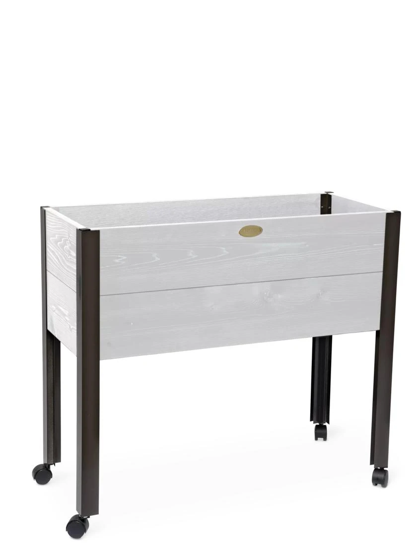 Grow an abundance of food and flowers in a compact space. This lovely planter box is made of rot-resistant wood, coated with eco-friendly, food-safe PolyWhey® stain. It features our signature lifetime aluminum legs, and casters make it easy to roll around on your deck or patio. With a 10.5″ planting depth, this garden box is perfect for herbs, veggies, edible flowers, or an entire salsa garden. No-bend gardening is easier on your back and knees, and you’ll have fewer weeds to deal with too!