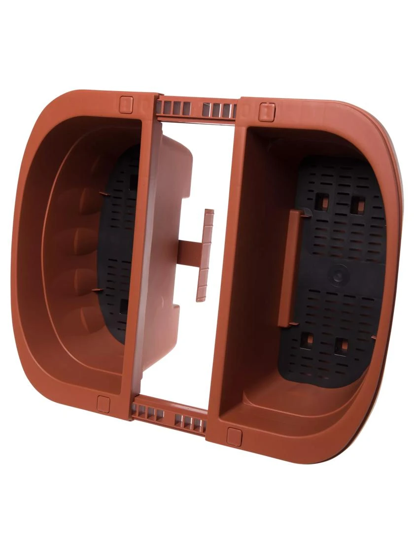 This innovative planter makes it easier than ever to surround your home with lush, colorful plants. The patented design includes sturdy brackets that easily adjust to fit railings from 1″ to 5″ wide. Simply lock the support arm to the desired width, hang the planter, then fill with your favorite flowers or herbs. No tools, mounting hardware or drilling required. A hidden adjustable support bar keeps planters level. A fast, easy and secure way to dress up railings along a deck or balcony, or bring color to fences. The evaporative grid self-watering system helps keep plants healthy and lets you water less often. Not suitable for round railings.